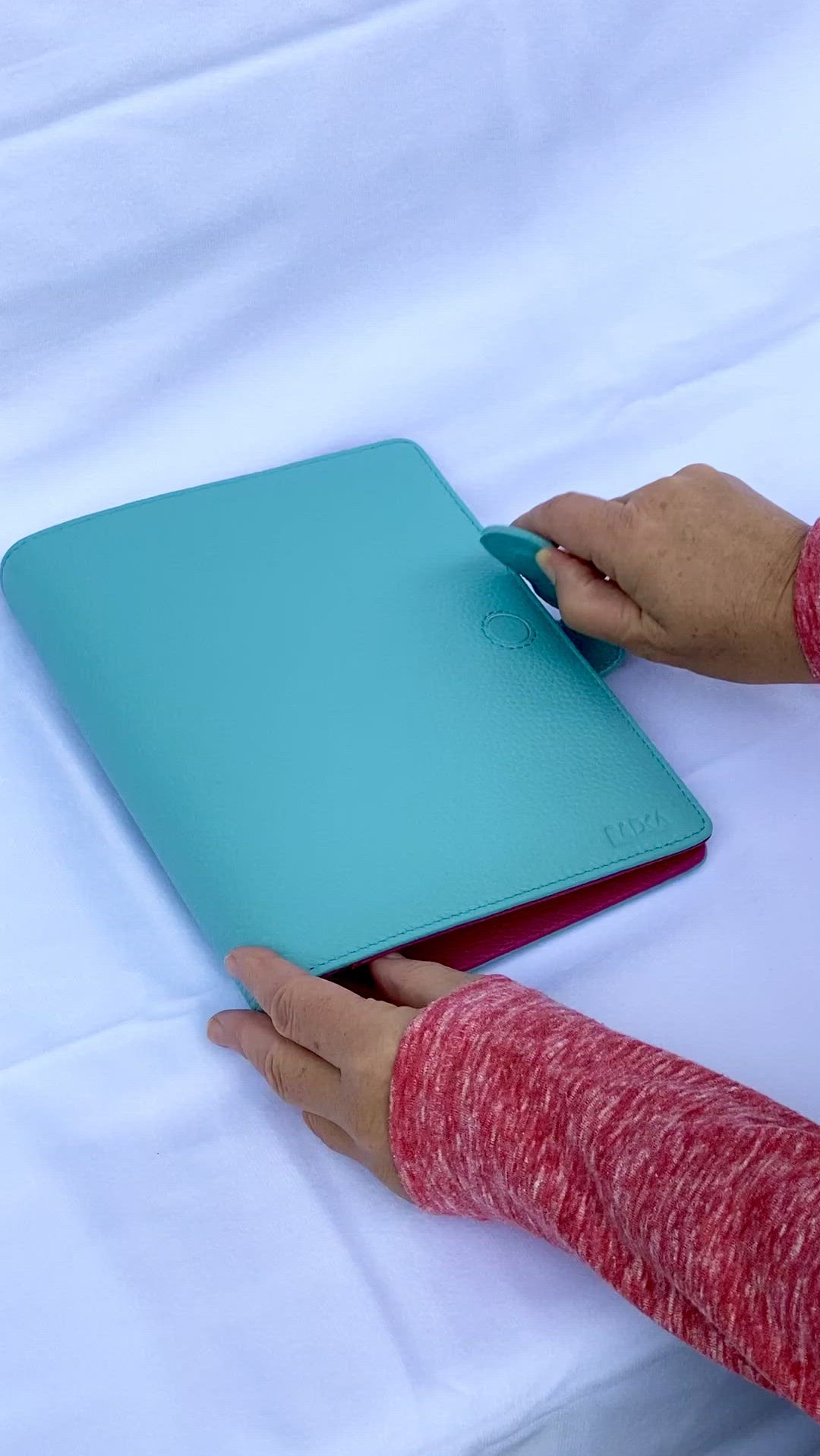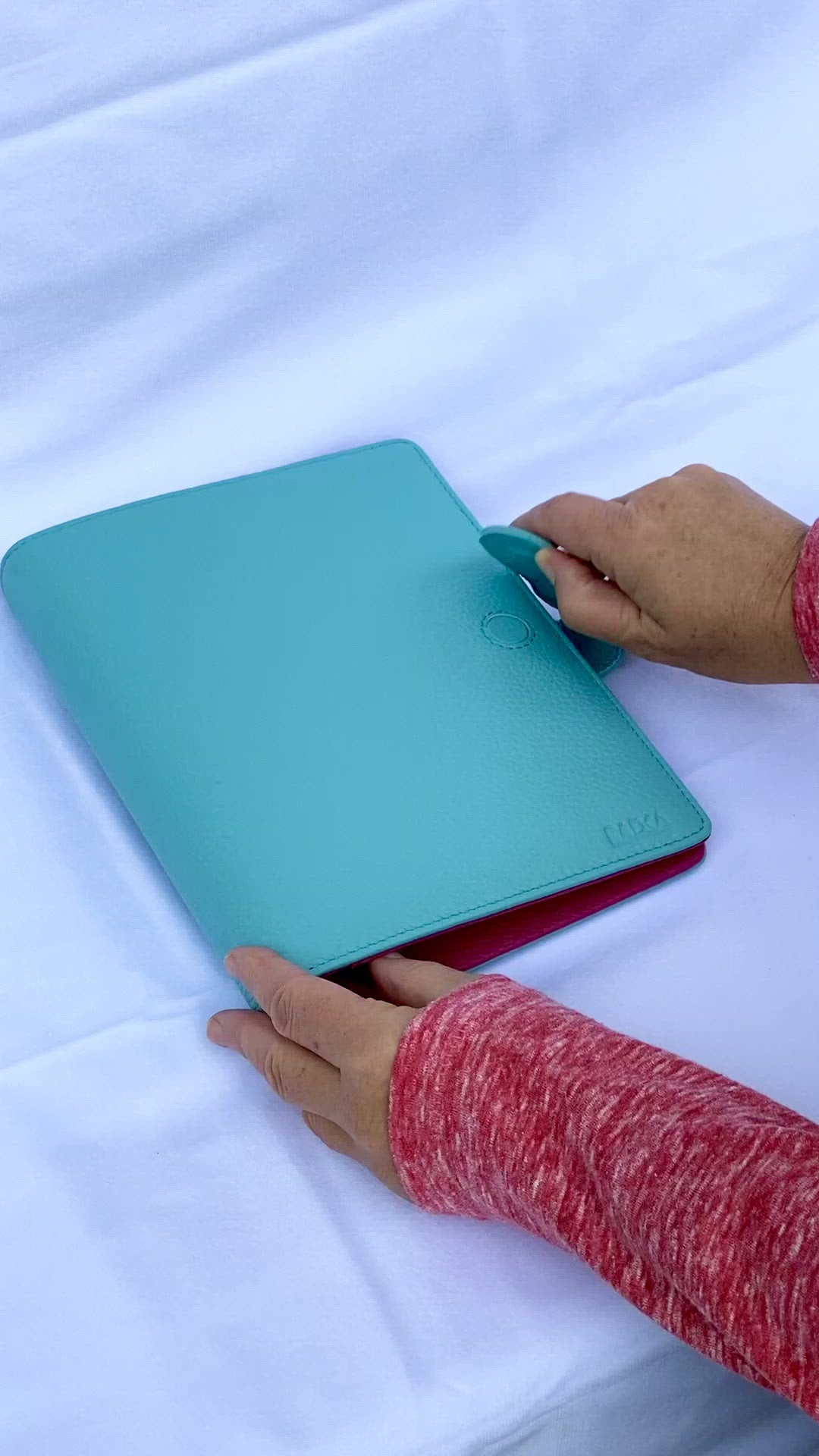 • Außenhülle: Türkises echtes Leder – stilvoll & elegant